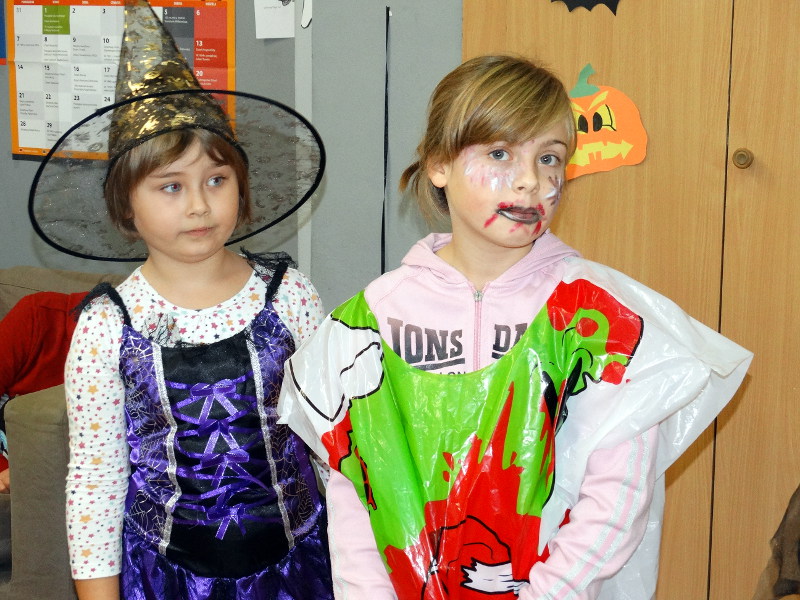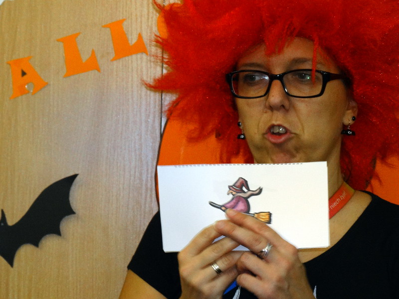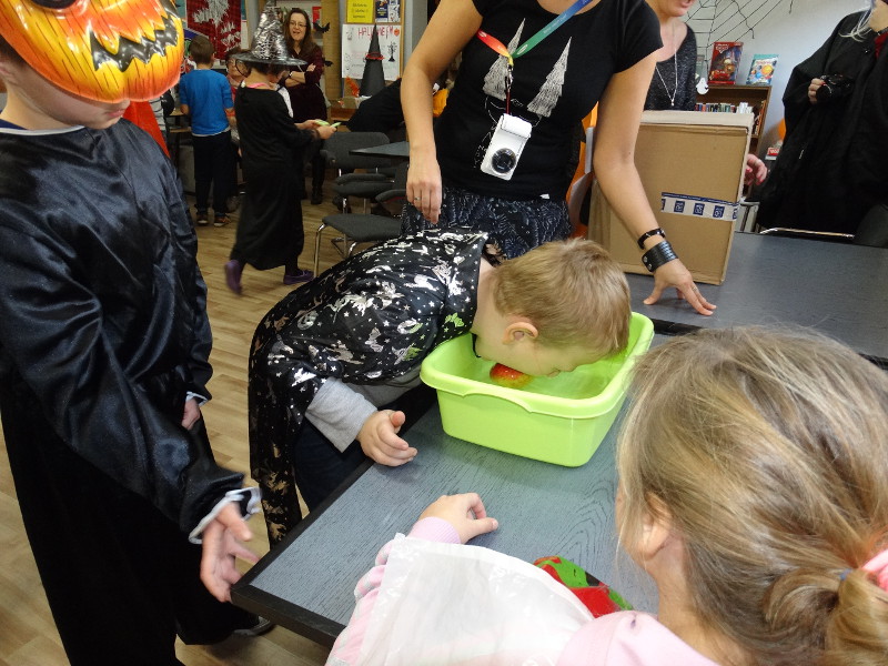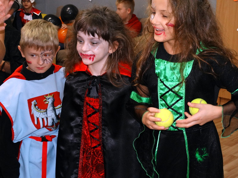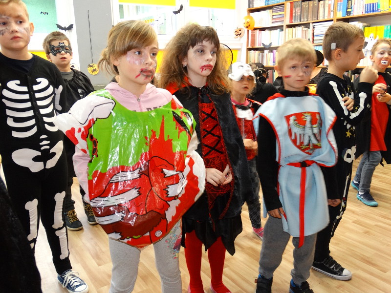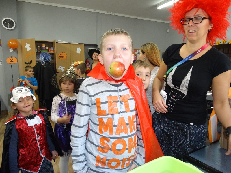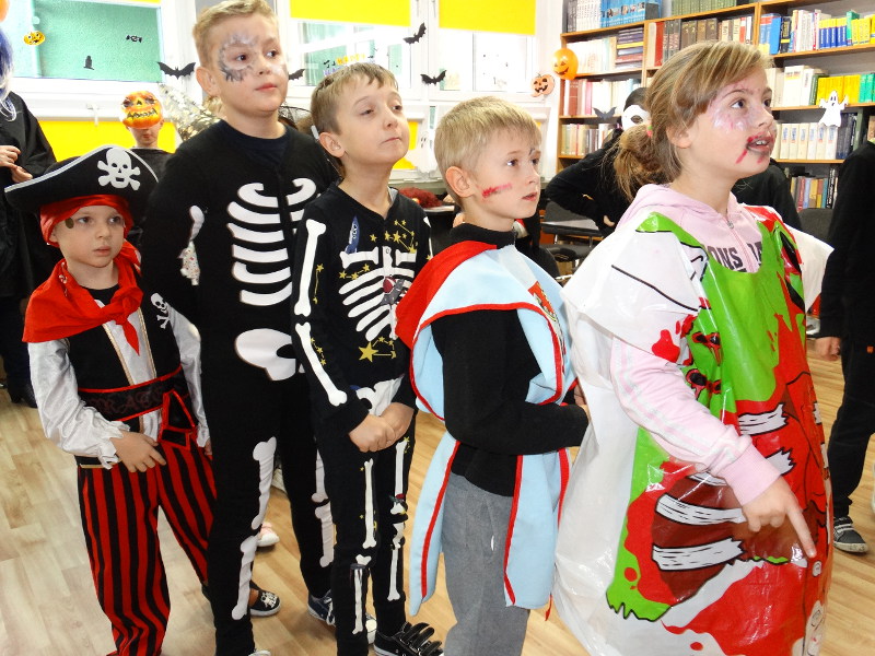 Nauka języka angielskiego to także poznawanie zwyczajów i świąt obchodzonych w krajach anglojęzycznych. Jednym z ulubionych przez dzieci świąt jest Halloween - tradycja związana z pożegnaniem lata, lampionami z dyni oraz przede wszystkim zabawami w strrrasznych przebraniach. Nawiązując do angielskiego zwyczaju, w naszej bibliotece szkolnej odbyła się zabawa zorganizowana przez panie nauczycielki języka angielskiego - Katarzynę Cichoń i Magdalenę Droś-Gałecką. Rzuty do dyni, dyniowe kręgle, memory z helloweenowymi obrazkami, nauka słówek, łowienie jabłek z miski i na wędce oraz oczywiście przegląd strojów - to główne atrakcje tego wesołego dnia. Zapraszamy do przeglądania zdjęć - znalezienie własnego dziecka nie będzie tym razem takie łatwe. /Katarzyna Cichoń/