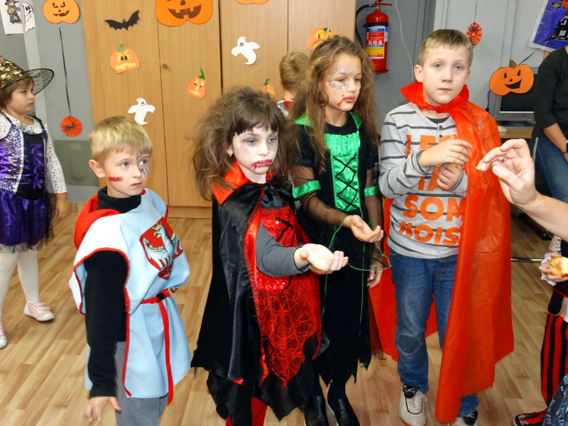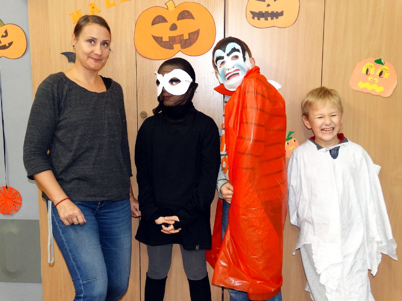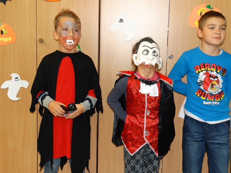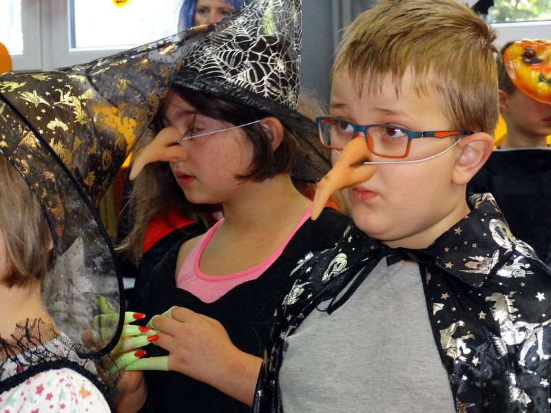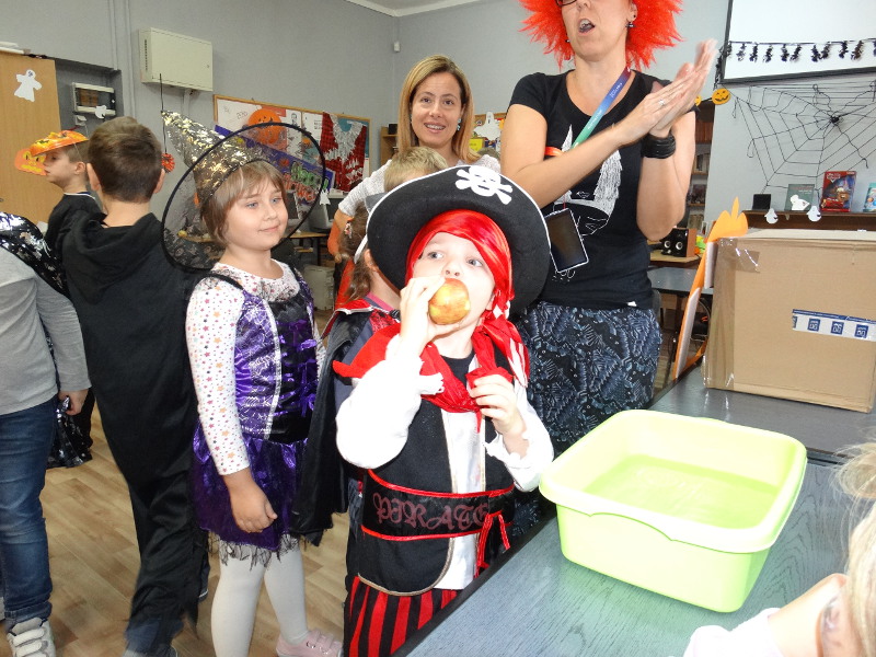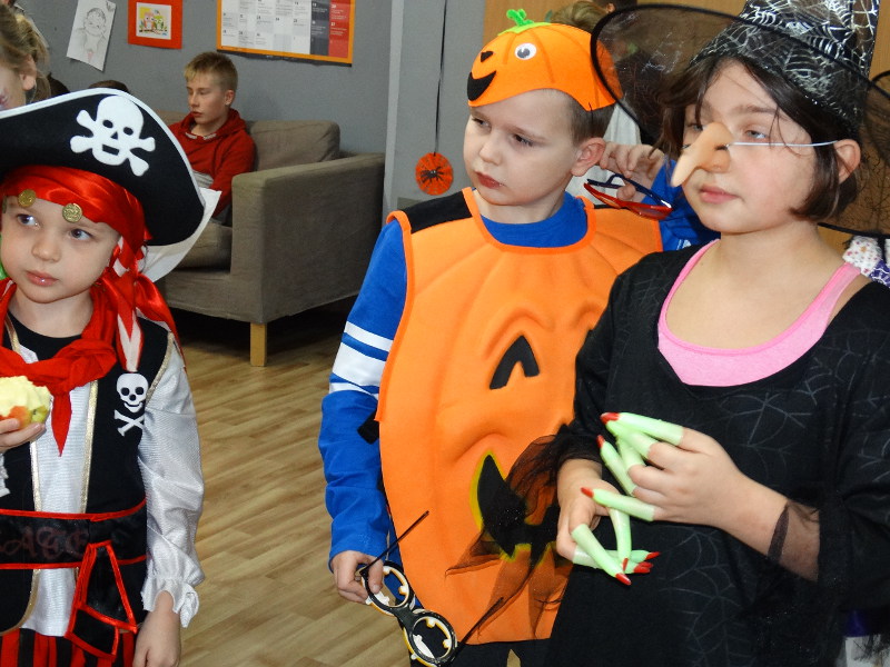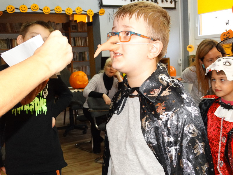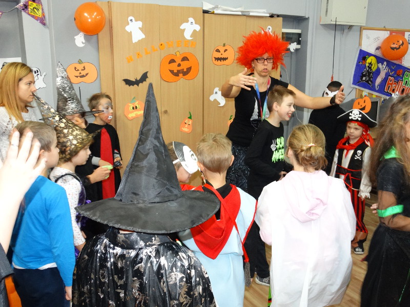 Nauka języka angielskiego to także poznawanie zwyczajów i świąt obchodzonych w krajach anglojęzycznych. Jednym z ulubionych przez dzieci świąt jest Halloween - tradycja związana z pożegnaniem lata, lampionami z dyni oraz przede wszystkim zabawami w strrrasznych przebraniach. Nawiązując do angielskiego zwyczaju, w naszej bibliotece szkolnej odbyła się zabawa zorganizowana przez panie nauczycielki języka angielskiego - Katarzynę Cichoń i Magdalenę Droś-Gałecką. Rzuty do dyni, dyniowe kręgle, memory z helloweenowymi obrazkami, nauka słówek, łowienie jabłek z miski i na wędce oraz oczywiście przegląd strojów - to główne atrakcje tego wesołego dnia. Zapraszamy do przeglądania zdjęć - znalezienie własnego dziecka nie będzie tym razem takie łatwe. /Katarzyna Cichoń/