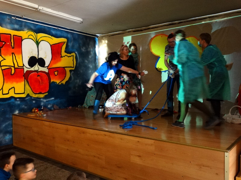 Kwiecień to niebieski miesiąc autyzmu. Z tej okazji dyrekcja i nauczyciele z naszej szkoły wystąpili w autorskim przedstawieniu pt "Wróżek czar". Scenariusz napisała pani Katarzyna Gurok, mama Madzi z klasy 3c. Główną bohaterką jest uroczy motylek o imieniu Magdalenka, którego niszczy zły potwór Autyzm. Walka trwa i dzięki pomocy Wróżki Logopedii i Dwóch Najważniejszych Wróżek (pań dyrektorek z SP nr 2) oraz Wróżce Kasi mały motylek rozwija skrzydła i wzlatuje ku słońcu. /Ewa Baranowicz/