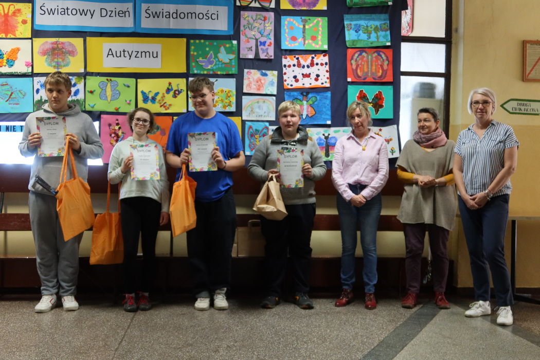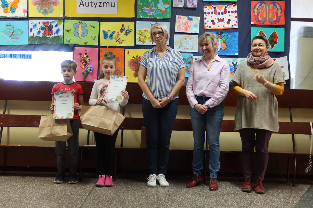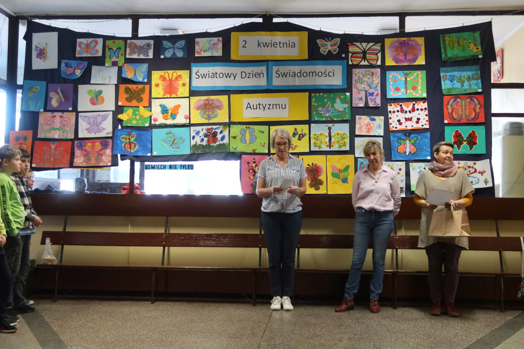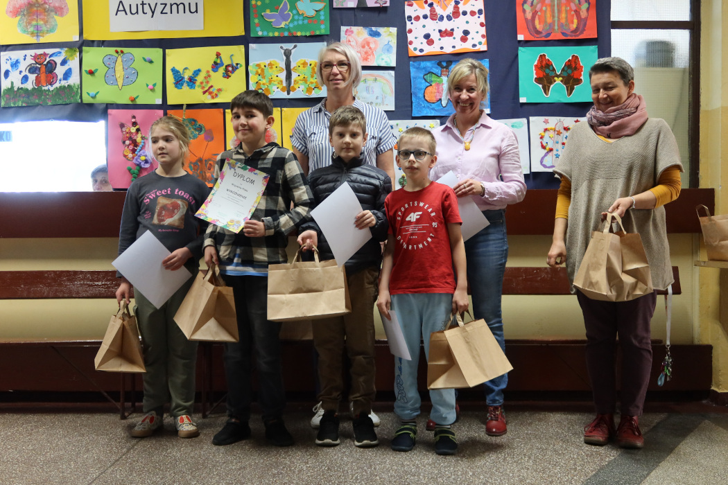 Rozstrzygnięcie motylowego konkursu plastycznego z okazji Światowego Dnia Świadomości Autyzmu. W kategorii kl.1-4: 1 miejsce - Marta Gigla kl.3c 2 miejsce - Jan Sidełko kl. 3b 3 miejsce - Karol Łuksza kl. 1b Wyróżnienia: Filip Szwagiel kl. 1a, Zuzanna Marczyk kl.2c, Adrian Nowaczyński kl. 3c, Antoni Goczok kl. 4a, Wojciech Ptak kl. 3a W kategorii kl. 5-8: 1 miejsce - Olivier Głaz kl. 8c 2 miejsce - Joanna Pogorzałek kl. 7c 3 miejsce - Artur Krawczyk kl. 7b Wyróżnienia: Bartłomiej Kaniecki kl. 7a, Kinga Wojak kl. 6f Nagroda publiczności - Lilianna Ochman kl. 4c Wszystkim laureatom gratulujemy