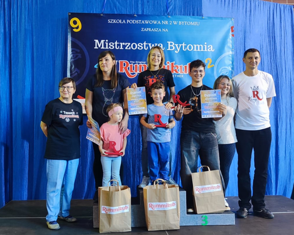 Dziękujemy również sponsorom: Społem, P-Gaz, EGalwan, TM Toys, a także klubowi Sezam za współpracę. Patronat nad wydarzeniem objął Prezydent Miasta Bytomia, a odwiedził nas Wiceprezydent Adam Fras. Szczególne podziękowania kierujemy do organizatorów – Małgorzaty Czyż-Przestańskiej, Magdaleny Bober i Marka Ajzermana. To dzięki ich wiedzy, doświadczeniu i profesjonalizmowi zawody odbyły się na tak wysokim poziomie i przebiegły w doskonałej atmosferze. Dziękujemy również dyrekcji szkoły, która wspierała nasze działania i z wyczuciem studziła nasze ambicje i emocje, a także wszystkim trenerom i nauczycielom oraz uczniom, którzy pomagali w organizacji tego wydarzenia. Dziękujemy, że byliście z nami i już dziś zapraszamy na kolejne rummikubowe spotkania – bo najlepsze dopiero przed nami!